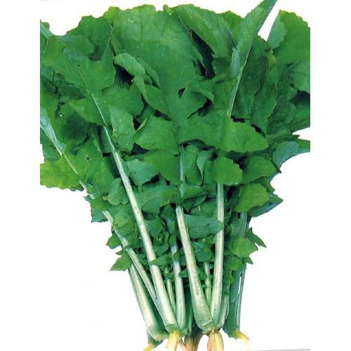 草勢旺盛で、作りやすく、秋~春どりを中心に周年栽培にっも適する豊産種。葉は鮮緑色で数が多く毛茸は少ない。軸は青軸で株貼りがよく結束しやすい。葉質はやわらかく、歯切れ・風味ともにすぐれ食味上々。浅漬け、和え物、煮物などに最適。