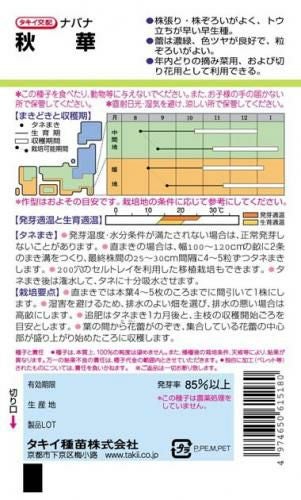 他の画像を見る ナバナ 種 【 秋華菜花 】 種子 2dl ¥ 7,150 税込 在庫切れ 【 ガーデニング 家庭菜園 】種 苗 苗木 園芸用品 農業用 資材 菜園くらぶ 再入荷お知らせ お気に入りに登録する