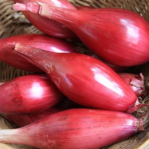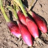 赤の発色が良く、細長い形がユニークな玉ねぎです。味はマイルドで甘みがあるのでサラダに最適です。保存はあまりできない品種ですが、しっかり乾燥させた後、寒くて乾燥した環境に保管すれば短期的な保存はできます。