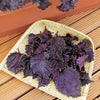 日本に古くから利用されてきた赤紫色の品種です。葉が縮れ、芽ジソ、穂ジソはツマや薬味として、葉ジソは梅干しや、しょうが漬けの色づけなど広く利用できます。