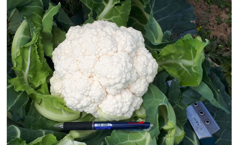 定植後 100~110日で収穫期。草勢旺盛で草姿は立性となる。内葉はカールして花蕾を包む。花蕾は豊円で特に締りに優れる。ゆるみも遅く在個性良好。