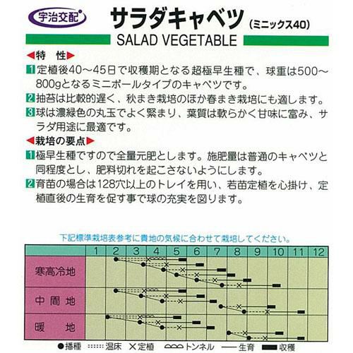 一般的には涼しい気候を好みますが、温度の適応範囲は広く、各作に適した品種も増えてきています。 夏まき栽培は早生から晩生の品種を使い分けることによって、初秋から冬にかけて収穫することができます。 秋にまいて翌春収穫する秋まき栽培は、品質が良く、結球もしっかりしたものが収穫できます。 春まき栽培では早まきほど育苗に加温や保湿が必要となり、また後半は気温が高くなるため、病虫害も多く発生するので注意が必要です。 いずれの場合においても極端な早まきや遅まきを避け、その地域に合った栽培時期を守りましょう。