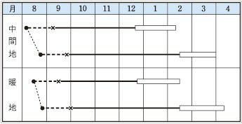 一般的には涼しい気候を好みますが、温度の適応範囲は広く、各作に適した品種も増えてきています。 夏まき栽培は早生から晩生の品種を使い分けることによって、初秋から冬にかけて収穫することができます。 秋にまいて翌春収穫する秋まき栽培は、品質が良く、結球もしっかりしたものが収穫できます。 春まき栽培では早まきほど育苗に加温や保湿が必要となり、また後半は気温が高くなるため、病虫害も多く発生するので注意が必要です。 いずれの場合においても極端な早まきや遅まきを避け、その地域に合った栽培時期を守りましょう。