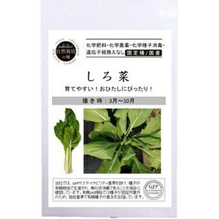 大阪しろ菜とも呼ばれる関西在来野菜。種まきから一か月前後で収穫。無施肥での栽培に比較的適性がある。自然農法で栽培された国産の種。