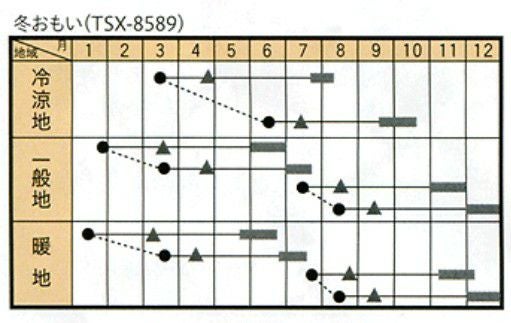他の画像を見る キャベツ 種 【 冬まどか 】 コート5000粒 ( キャベツの種 ) ¥ 17,380 税込 在庫切れ 12月~3月どりの鮮緑色で球が美しくまとまる寒玉品種。 再入荷お知らせ お気に入りに登録する