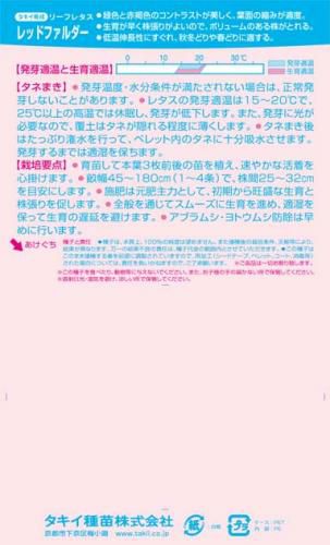 他の画像を見る レタス 種 【 レッドファルダー 】 種子 L5千粒 ¥ 4,015 税込 【 ガーデニング 家庭菜園 】種 苗 苗木 園芸用品 農業用 資材 菜園くらぶ カートに入れる お気に入りに登録する