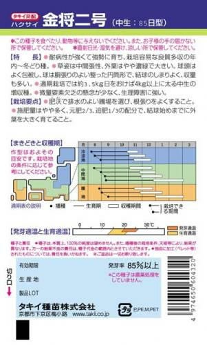 白菜 種 【 金将二号 】 種子 小袋(約20ml)