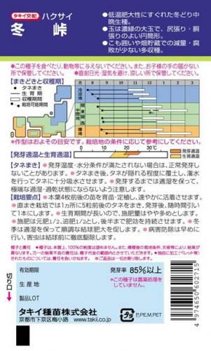白菜 種 【 冬峠 】 種子 小袋(約20ml)