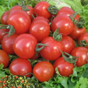 果実は赤色球形、12~18g 果肉は粘質多汁で食味がよい。標準糖度は8~9中葉で葉幅、節間、草勢は普通。葉かび病、ToMVに抵抗性