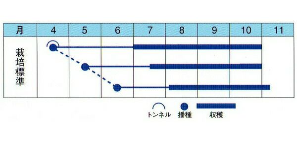 は種後60日位から収穫でき、節間短く生育旺盛で作りやすい。