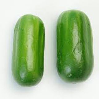 収穫上限果重50g前後、果長7cm内外。親指大になったら早めに収穫するのがおすすめ。食味良好。実にはイボ、トゲ、ブルームがない。
