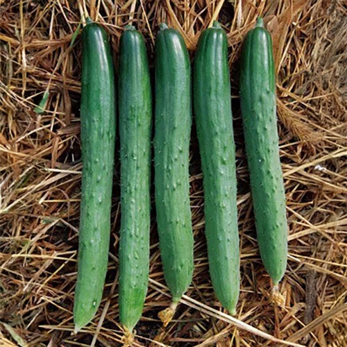 露地の早まきから普通まきに適します。着果が良く生育旺盛。褐斑病、うどんこ病、べと病に強く、つるもちが良いので丈夫で育てやすい。果実は鮮緑色、やや長めで尻太りが少なく果揃いも良い品種です。