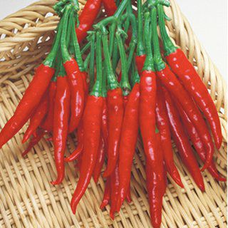 辛みはきわめて強く、果実を乾燥して香辛料として使う代表品種です。生育旺盛でつくりやすく、長さ2~5cm位の小型の果実が房状にたくさんつきます。