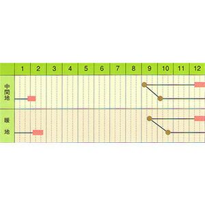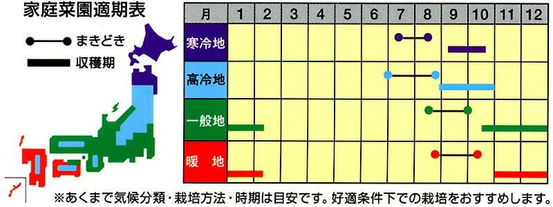 大根は古くから日本で栽培されてきた野菜で、地方によって品種も多く形や肉質などの品種の分化が著しく発達している野菜です。 気候は涼しいところを好み、生育温度は15~20℃が適しています。 高温に弱く、関東以南では高冷地を除いた5~7月まきは病虫害にあいやすく、収穫が難しくなります。寒さには強い方ですが、晩秋以後の低温は根の太りが悪くなるので、栽培地にあった品種を選びましょう。
