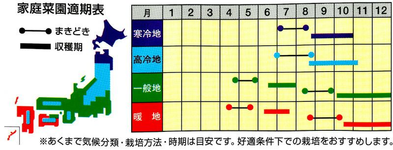 大根は古くから日本で栽培されてきた野菜で、地方によって品種も多く形や肉質などの品種の分化が著しく発達している野菜です。 気候は涼しいところを好み、生育温度は15~20℃が適しています。 高温に弱く、関東以南では高冷地を除いた5~7月まきは病虫害にあいやすく、収穫が難しくなります。寒さには強い方ですが、晩秋以後の低温は根の太りが悪くなるので、栽培地にあった品種を選びましょう。