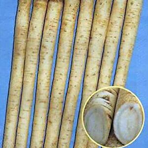 アクがほとんど無く調理前のさらしを必要とせずサラダ牛蒡として、加工前の下処理の必要がないことから加工用原料として利用価値が高い早生ごぼうではス入りが遅く果肉が緻密根長75?85cm早生系で立ち性の小葉のため密植栽培が可能です