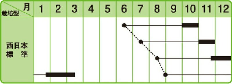 従来の品種より早太りで、生育日数100日で肥大を完了する。