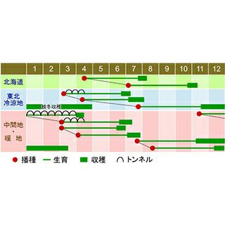 人参には、長根種と、短根種があります。長い根の東洋系は暖地向きの品種で、根が短い西洋系にはトウ立ちの安定した寒地型品種と、トウ立ちの不安定な暖地型品種とがあります。 比較的冷涼な気候での生育がよく、高温や著しい低温によって根部の肥大や着色が阻害されます。 このために、夏季は冷涼地で、冬季は温暖地での栽培が盛んです。