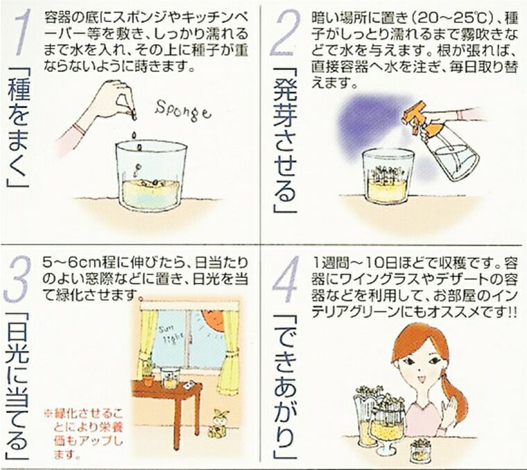 他の画像を見る 【送料無料】スプラウト 17種類から6種類選べる チャレンジセット[種 販売 通販] ¥ 1,710 税込 プレゼントにもおすすめ!楽しく栽培して食べ比べ★自由研究にも◎ カートに入れる お気に入りに登録する