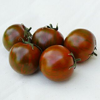 珍しい果肉皮が特徴のゼブラ柄トマト。一般的な中玉トマトよりは小ぶりな実がなります。