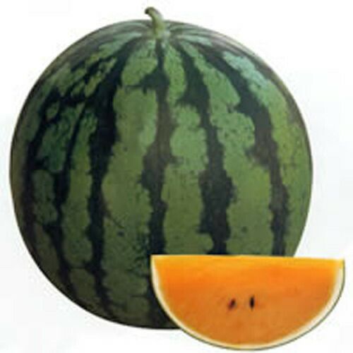 果肉が鮮やかなオレンジ色の中玉スイカ。