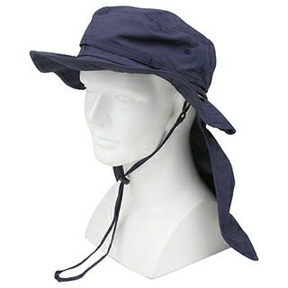 長時間の屋外作業時の、頭部・首の日除け。土汚れ、突発的な雨にも対応できる撥水加工です。日除けタレが必要の無い時に収納可能なポケット付です。内側メッシュで通気性をアップしています。