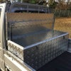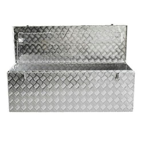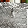 トラックの荷台にジャストサイズ!万能アルミボックス!大切な荷物を埃や雨からガード!軽トラや2t車の荷台にジャストサイズ。雨水が侵入しにくい構造。南京錠の取り付けが可能!防犯対策に。両側には持ち運びに便利な取っ手が付いています。蓋の内側にはダンパーが付いてるので、不意に蓋が閉まる心配がありません。