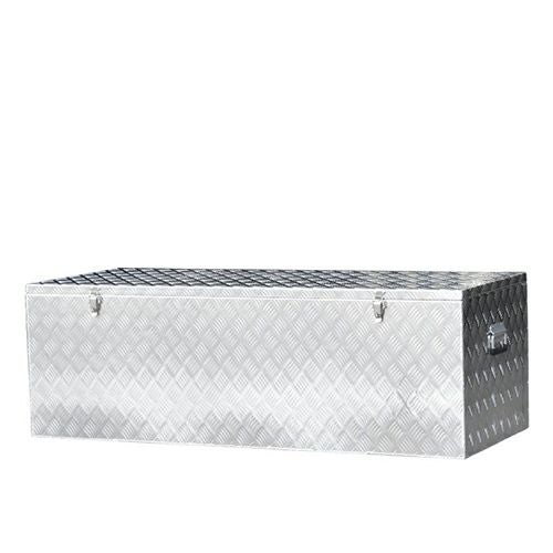 トラックの荷台にジャストサイズ!万能アルミボックス!大切な荷物を埃や雨からガード!軽トラや2t車の荷台にジャストサイズ。雨水が侵入しにくい構造。南京錠の取り付けが可能!防犯対策に。両側には持ち運びに便利な取っ手が付いています。蓋の内側にはダンパーが付いてるので、不意に蓋が閉まる心配がありません。