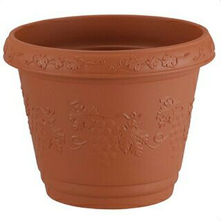 おしゃれなぶどう柄のレリーフプランター。玄関先の寄せ植えに最適な設計。通水性・通気性のよい底穴構造。