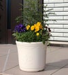 草花の寄せ植えや中低木などを植え付けしやすい中深タイプ。安定感のある寸胴型なので土容量もたっぷり。シンプルなフォルムにさりげなく装飾を施すことで、植物をエレガントに飾れます。手作り感のあるフランジまわりや、陶器鉢のような表面仕上げが特徴です。
