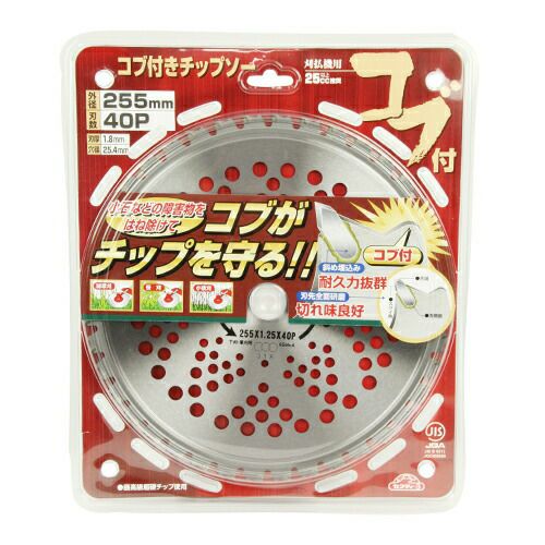 台金刃部に突起しているコブが小石等の障害物をはねのけ次のチップを保護します。斜め埋め込みチップで耐久性に優れています。チップは全面(スクイ面、先端面、両側面)研磨のため切れ味抜群です。