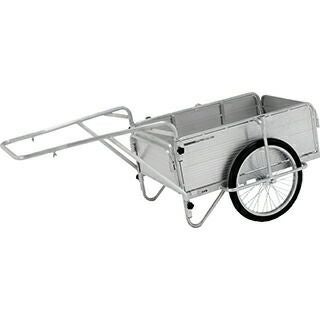 頑丈な中空支柱の軽量設計ですから収納・運搬もラクラクこなせます。 使用しない時はワンタッチで折りたため、コンパクトに収納できるリヤカーです。 四方を板で囲ってあるため、小さな物でも運搬中に落とすことはありません。