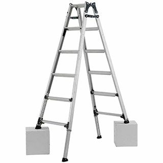 幅広踏ざんで軽量な伸縮脚付はしご兼用脚立