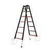 伸縮幅435mmの調整を立ったままできるという進化と、ステップ幅60mmによる安心感を併せ持った新型脚立赤と黒のコントラストカラー