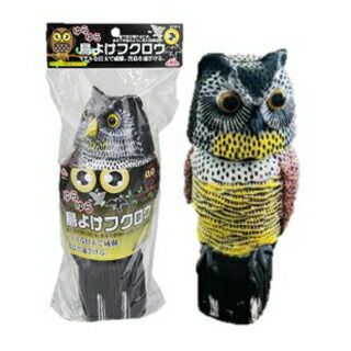 鳥用撃退資材です。フクロウを模した人形で動物を警戒させます。風で人形の頭が動き、動物を警戒させます。リアルな目玉で害鳥を威嚇して寄せ付けません。田畑、マンション、ベランダなどで活躍します。