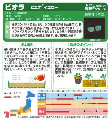 他の画像を見る ビオラ 種 【 ビビ イエローブロッチ 】 1000粒 ( ビオラの種 ) ¥ 4,180 税込 在庫切れ 花色の豊富さと、冬も咲く抜群の連続開花性! 再入荷お知らせ お気に入りに登録する