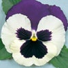 上弁が青紫色で、下弁が白地に黒いブロッチです。大輪系「LRパンジー」シリーズです。