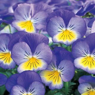 花径約6cmの中輪で、微妙に変化する青紫色と淡黄色の2色咲きの花が、コンパクトな草姿に鮮やかに咲きます。