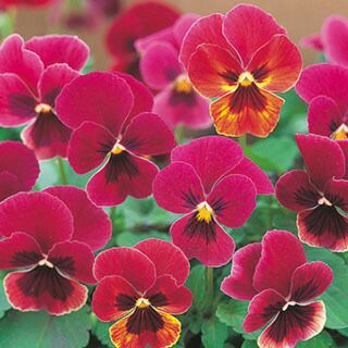 パンジーとビオラのよい部分を併せもった、生育旺盛で耐寒性が強く、冬もよく咲く丈夫なシリーズ。花径約4cmの小輪で秋から春まで花が咲き続けて長期間楽しめる。