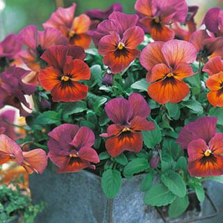 パンジーとビオラのよい部分を併せもった、生育旺盛で耐寒性が強く、冬もよく咲く丈夫なシリーズ。花径約4cmの小輪で秋から春まで花が咲き続けて長期間楽しめる。
