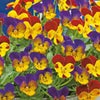 バイオレットイエローの「F1フローラルパワー ゴールデンブルース」とレッドイエローの「F1ビビ ファイア」の2色咲きビオラの混合。スミレ科