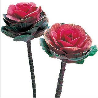 茎が長く伸び、切り花で重宝される。花壇用の葉牡丹より株間を狭く植え、支柱やネットを張り倒れないように育てる。少し色づき始めたころ、下の方の葉をかき取ると写真のような姿になる。(定植の幅を10~15cmにすると生け花向きのより小さな葉にできる)