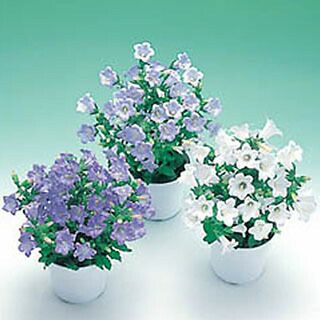 ベル形の花が上向きに咲く。4号鉢くらいでとても豪華な草姿になる鉢物向き矮性種。