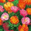 オレンジ・ピンク・イエロー系のミックスで、一重~半八重、八重咲きが混ざる。