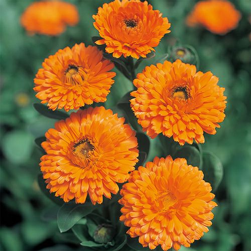 輝くような濃いオレンジの大輪八重咲き種。茎が硬いので、切り花にもおすすめです。