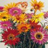 シルバーグリーンの葉に明るい花色のミックス。花の底の色の変化も魅力的。キク科