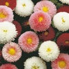 デージーでは最小輪の極多花性種。赤、白、桃の混合。花色は鮮明。花径約2cm。キャンディのようにかわいらしい花で、一気に庭が華やぐ。キク科