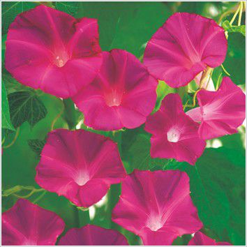 赤色無地の花で早咲き性。旺盛に育ち、つるもよく伸び、垣根やアーチを作るのに最適。ヒルガオ科【西洋朝顔】生育旺盛で多花性種が多い。発芽に高温が必要で、八重桜の開花以降にタネまきしてください。