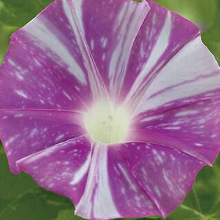 ヒルガオ科 朝顔の中でもっとも大輪に改良された品種で、花色は紅色で白縞が入り中心が白色になります。あんどん作りなどに最適です。本葉が10数枚になるとつるが伸びます。