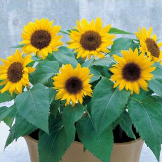 黄色の一重花、茶褐色の芯。基本的に1本立ち。草丈・姿の揃いがよく作りやすい。花壇での草丈30~40cm。小鉢作りで草丈15~25cmの超ミニサイズにもできる。周年50~55日で開花する極早生種。キク科【矮性~中矮性】